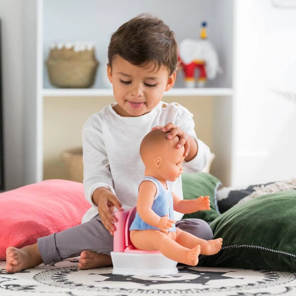 Son grand poupon est bientĂŽt propre et va arrĂȘter de porter des couches : il faut alors lui apprendre Ă utiliser les toilettes ! Les toilettes interactives sont parfaites pour initier cet apprentissage. Avec son couvercle qui s’ouvre comme de vraies toilettes, on peut asseoir son poupon pour faire semblant. Le bouton de la chasse d’eau permet d’activer 2 sons : celui du pipi et celui de la chasse d’eau. Les toilettes interactives fonctionnent avec des piles.