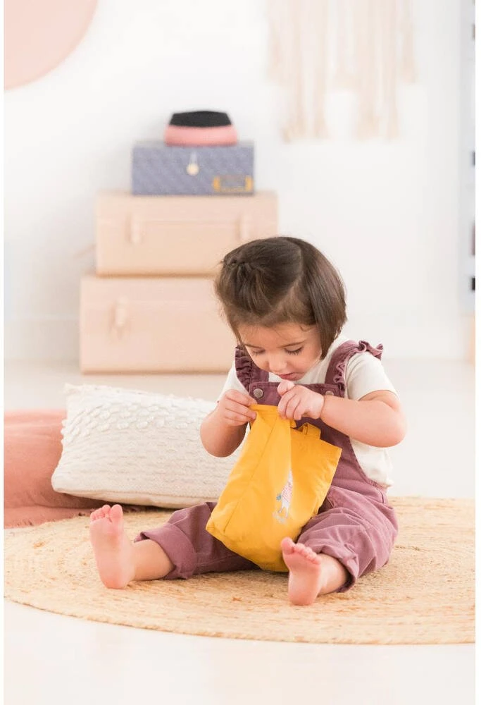 Le Grand Coffret Nurserie contient tous les accessoires indispensables pour s’occuper de son petit poupon : un pot; un tube de crème; une lingette; une tĂ©tine; une couche en tissu; une cuillère; une assiette de purĂ©e; un biscuit; un biberon; un bavoir et un tote bag pour tout ranger.