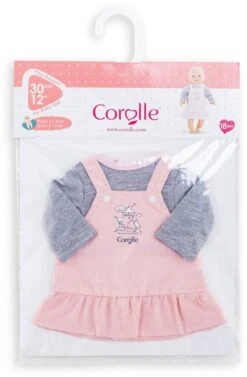 Intemporelle; la Robe Bords de Loire de couleur grise et rose ira Ă ravir aux petits poupons de 30cm mon premier poupon Corolle.