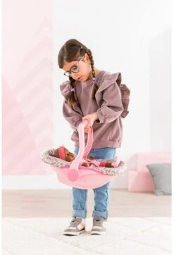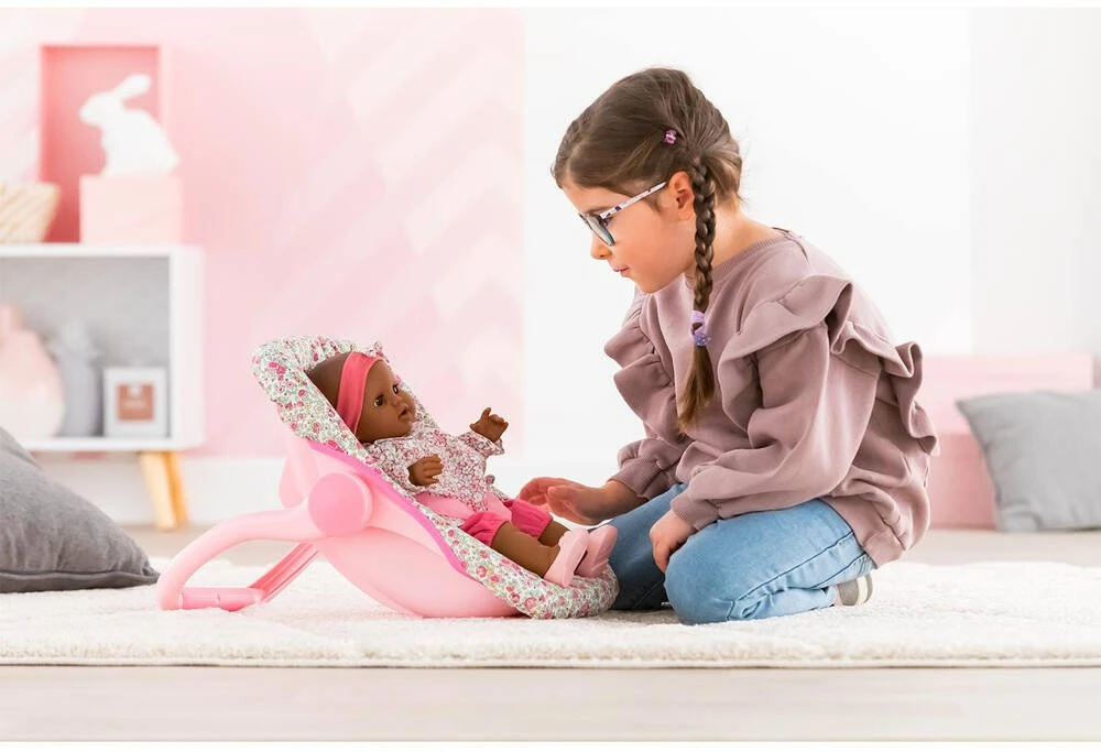 C’est l’heure de partir ! Le porte-poupon fleuri permet d’emmener partout les grands poupons de 36 Ă 42 cm. Une fois son grand poupon bien installĂ© dans le siège, il faut vĂ©rifier que les anses le maintiennent bien pour qu’il soit en sĂ©curitĂ© ! Le porte-poupon est lĂ©ger et par consĂ©quent facilement maniable. Le porte-poupon fleuri est Ă©quipĂ© d’une poignĂ©e Ă 3 positions qui permet tour Ă tour de porter son poupon, de le bercer ou tout simplement de l’installer en position assise.