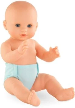 Vite, il faut changer la couche de son grand poupon ! Avec le Sac à langer et Accessoires l’enfant possède tous les éléments pour changer son grand poupon : un lait de toilette, une couche en tissu pour le change et un sac matelas à langer. Le sac matelas à langer est 2 en 1 : plié, il peut être transporté partout grâce à ses deux anses et il devient sac à langer avec une petite poche pour ranger tous les accessoires du change. Déplié, il est un véritable matelas à langer sur lequel installer son grand poupon et le changer. Le sac contient également un pot, un biberon et une tétine.