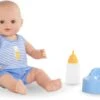 La poupĂ©e Anna peut marcher, chanter et pousser sa petite sĹ“ur dans sa poussette. Anna chante 3 chansons en français : « Frère Jacques », « Maman les petits bateaux » et « Ainsi font, font, font ». Il suffit d’appuyer sur la poitrine d’Anna pour la voir avancer et l’entendre chanter. Anna porte une robe, une culotte et des chaussures. Bouton : on/off. En plastique. Hauteur des poupĂ©es: Anna 40 cm, la petit soeur 13.5 cm. Dimensions de la poussette : 16 x 13.5 x 23 cm.