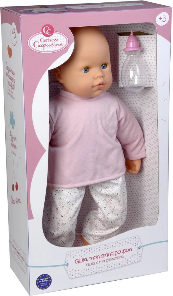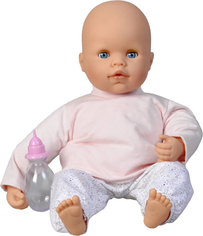 Bébé doux rêves au corps souple, de 48cm. Avec des yeux dormeurs (s’ouvrent et se ferment). Le poupon porte un haut à manches longues et un bas. Avec 1 biberon inclus. Bras, jambes et tête en vinyle. Matière(s) des vêtements : en coton. Consignes de lavage : nettoyer avec un chiffon ou une éponge humide. Fabriqué en Espagne. Intérêts pédagogiques pour l’enfant : imitation, jouer à la maman.