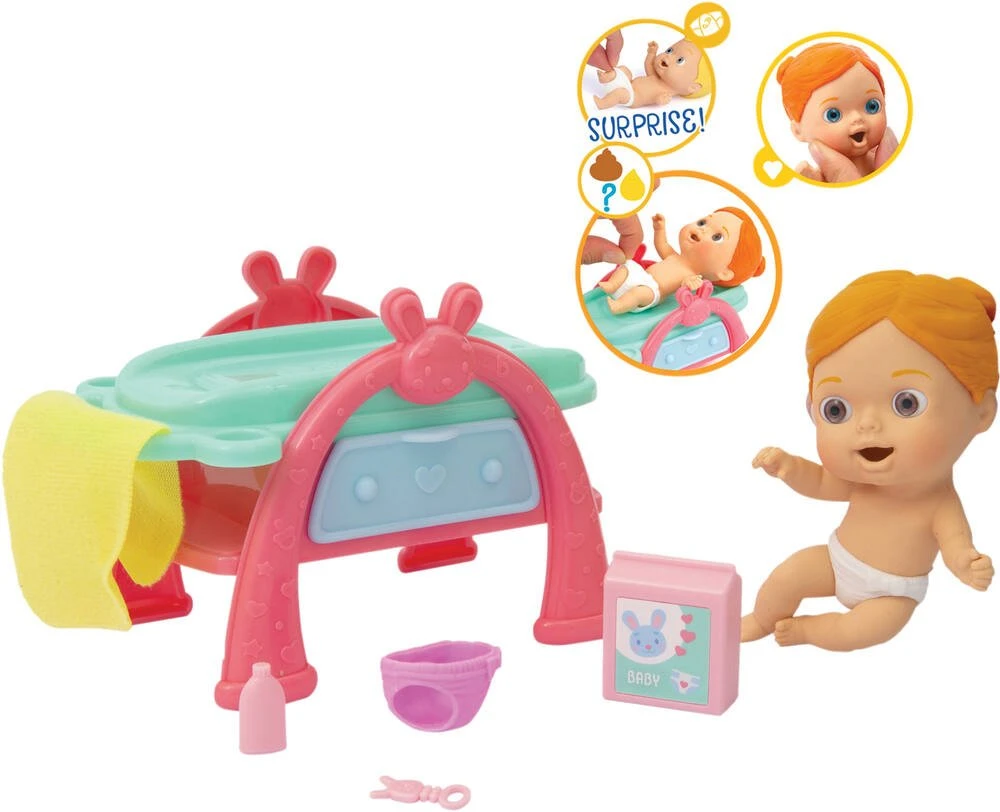 Des petits bébés souples qui se comportent comme de vrais bébés. Ils font des mouvements du corps étonnants, avec plein d’expressions de visage amusantes! C’est l’heure de changer ton Cicciobello… Installe-le sur la table à langer et prends soin de lui avec tous les accessoires inclus! Quelle surprise vas-tu découvrir dans sa couche…un pipi ou un caca. CONTIENT: 1 Cicciobello (modèle Fille ou Garçon), 1 couche coloré, 1 couche avec une surprise (pipi ou caca), 1 table à langer, 1 serviette, 1 bouteille de talc….