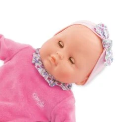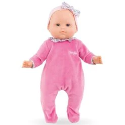 Son visage, ses bras et ses jambes, à la délicate senteur de vanille, sont en vinyle doux au toucher. Son corps est souple pour faciliter ses mouvements. Avec ses yeux dormeurs, elle fait dodo quand on la couche sur le dos. Elle est habillée d’un pyjama.