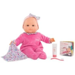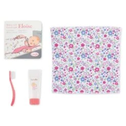 Avant d’aller faire dodo, le brossage de dents avec du dentifrice est indispensable. Puis, avec le livre et avec le doudou-lange de son poupon, l’enfant s’initie aux étapes qui le conduisent, en les reproduisant, vers le doux pays des rêves. Éloïse mesure 36 cm, une taille parfaitement adaptée aux petits bras de l’enfant pour la câliner, la materner et imiter les gestes qui font devenir grand.