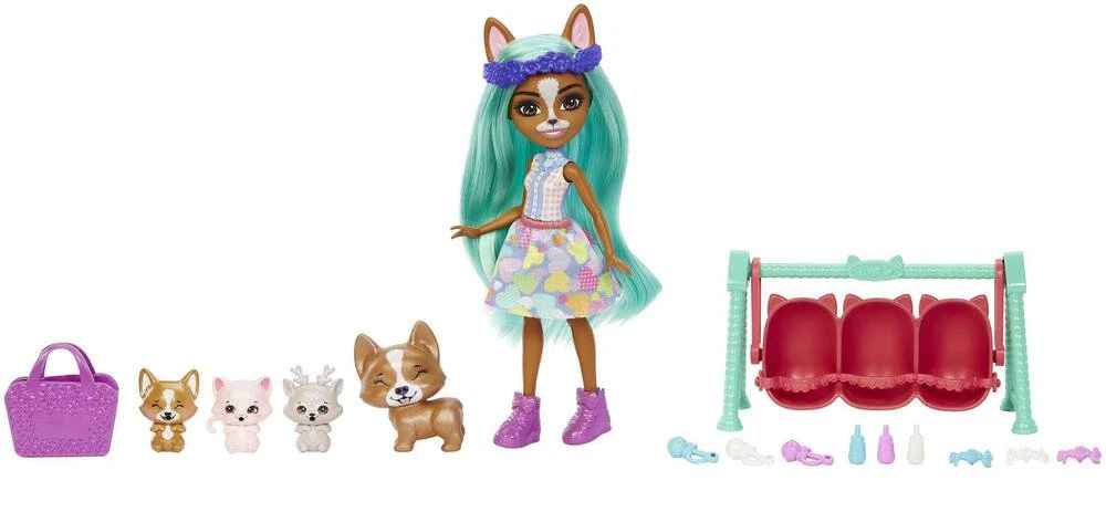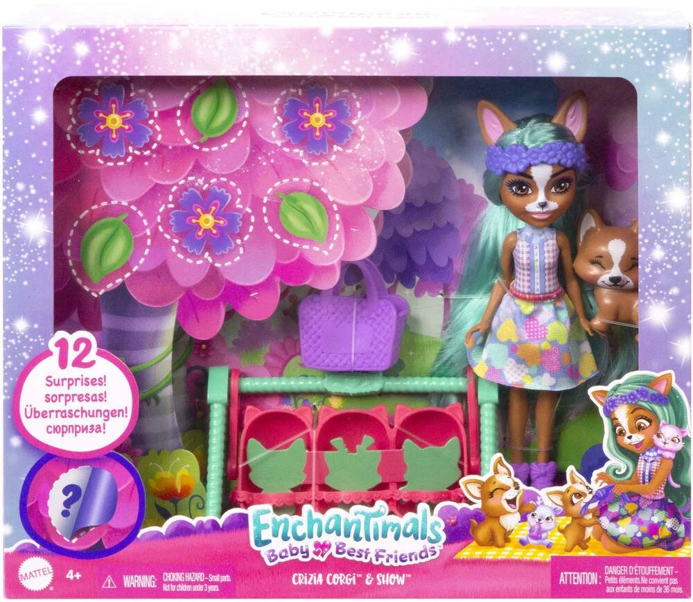 MATTEL ENCHANTIMALS – MEILLEURS AMIS DES BEBES 15 CM – POUPEE CRIZIA CORGI ET SHOW