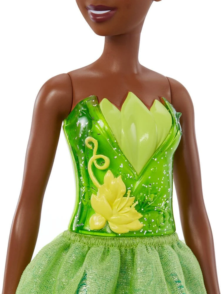 Donnez vie Ă lâhĂ©roĂŻne ambitieuse et dĂ©terminĂ©e du film Disney La Princesse et la Grenouille avec cette poupĂ©e Tiana. La princesse porte une tenue verte scintillante, un bustier moulĂ© et un jupon en tissu pailletĂ©. 2 accessoires, diadĂšme et chaussures sont inclus. Elle reprend le look signature du personnage de Tiana dans le film et, comme elle, elle est prĂȘte Ă vivre toutes sortes dâaventures ! La poupĂ©e ne tient pas debout toute seule. Les couleurs et les dĂ©corations peuvent varier.