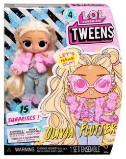 PoupĂ©e mannequin LOL Surprise Tweens Olivia Flutter ! DĂ©ballez 15 surprises et prĂ©parez-vous pour de nouvelles aventures de papillons en enfilant la tenue et les accessoires glamour d’Olivia Flutter. C’est l’heure de la fĂŞte! Sa tenue et sa coiffure magnifiquement stylĂ©es enchantent le monde, mais son maquillage Ă©blouissant et ses accessoires tendance, notamment un maquillage pour les yeux scintillant, des lunettes de soleil papillon, une breloque ceinture et un adorable tĂ©lĂ©phone Ă rabat, volent vraiment la vedette ! Elle a un très joli visage, de beaux cheveux, sa propre tenue fantastique et des membres mobiles pour de nombreuses poses. Chaque boĂ®te comprend une poupĂ©e de mode LOL Surprise Tweens, une mode cool, des chaussures, des accessoires, des lunettes de soleil, des boucles d’oreilles, un collier, une breloque papillon, une ceinture en chaĂ®ne, un sac Ă main, tĂ©lĂ©phone Ă clapet, brosse Ă cheveux et support de poupĂ©e. Collectionnez les 4 poupĂ©es mannequins LOL Surprise Tweens –