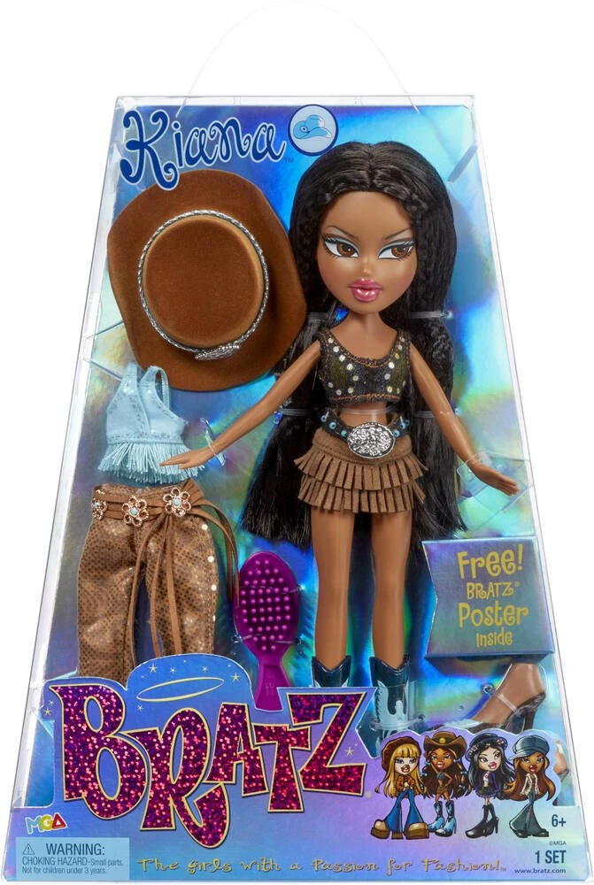 Les collectionneurs et les fans de mode adorent les poupées Bratz avec ces looks emblématiques. Le premier coffret Bratz 2002 de Kiana dans le cadre de la collection « Wild Wild West » ! Près de 20 ans plus tard, vous pouvez à nouveau ajouter la toute première poupée Kiana emblématique à votre collection. Les magnifiques tenues sont presque des répliques exactes de la poupée originale, maintenant dans un tout nouvel emballage holographique en édition spéciale qui montre son style personnel. Kiana est livrée avec 2 tenues époustouflantes pour de nombreux styles à assortir, 2 paires de chaussures & 1 chapeau. Chaque poupée dispose également d’une brosse à cheveux et d’une affiche holographique. Les amis de Kiana l’appellent « Outlaw Diva » parce que son apparence est si belle qu’elle devrait être illégale ! Collectionnez les 5 poupées mannequin originales Bratz, avec Meygan, Nevra, Kumi, Kiana et Dylan !