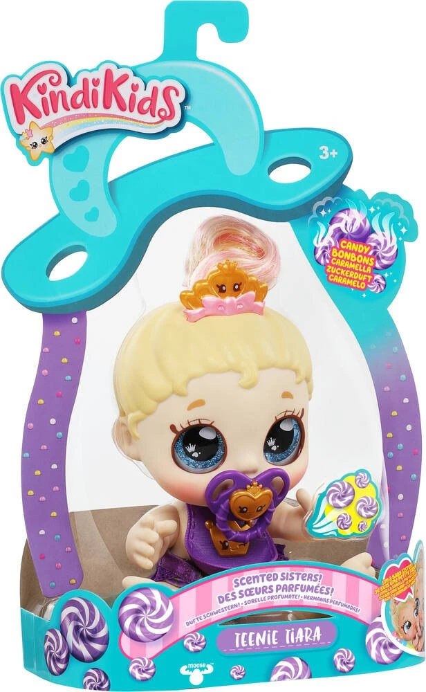 Découvre les petites sœurs de nos héroïnes Kindi Kids. Des poupées bébés trop mignonnes avec des grands yeux scintillants et un souffle parfumé. Poupée 21 cm et 2 accessoires inclus.