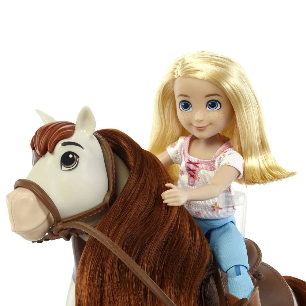 RecrĂ©ez les histoires dâamitiĂ©, de courage et dâaventure de la franchise Spirit des studios DreamWorks avec la poupĂ©e AbigaĂ«lle (environ 18 cm) et son cheval adorĂ© Boomerang (environ 20 cm) ! AbigaĂ«lle porte un jean en plastique moulĂ© et un joli haut en tissu. DotĂ©e de 7 points dâarticulation, elle peut prendre une multitude de poses. Boomerang peut bouger la tĂȘte pour reproduire son air espiĂšgle et dâautres attitudes, et possĂšde une criniĂšre toute douce. Ăgalement inclus dans le coffret : une selle, des rĂȘnes, une brosse et un ensemble de pommes. Le systĂšme de fixation maintient AbigaĂ«lle en selle lorsquâelle monte Boomerang. Les couleurs et les dĂ©corations peuvent varier.