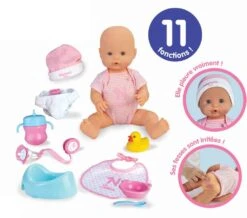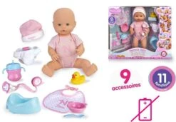 Nenuco Sara est une poupée de 42 cm avec 11 fonctions : Mange, Boit son biberon, Fesses rouges, Couche réutilisable, Pleure, Fait des bulles, Se baigne, Est articulé, Fait pipi dans son pot, Dort & Sent comme un vrai bébé ! 9 accessoires inclus ! Fonctionne sans piles .