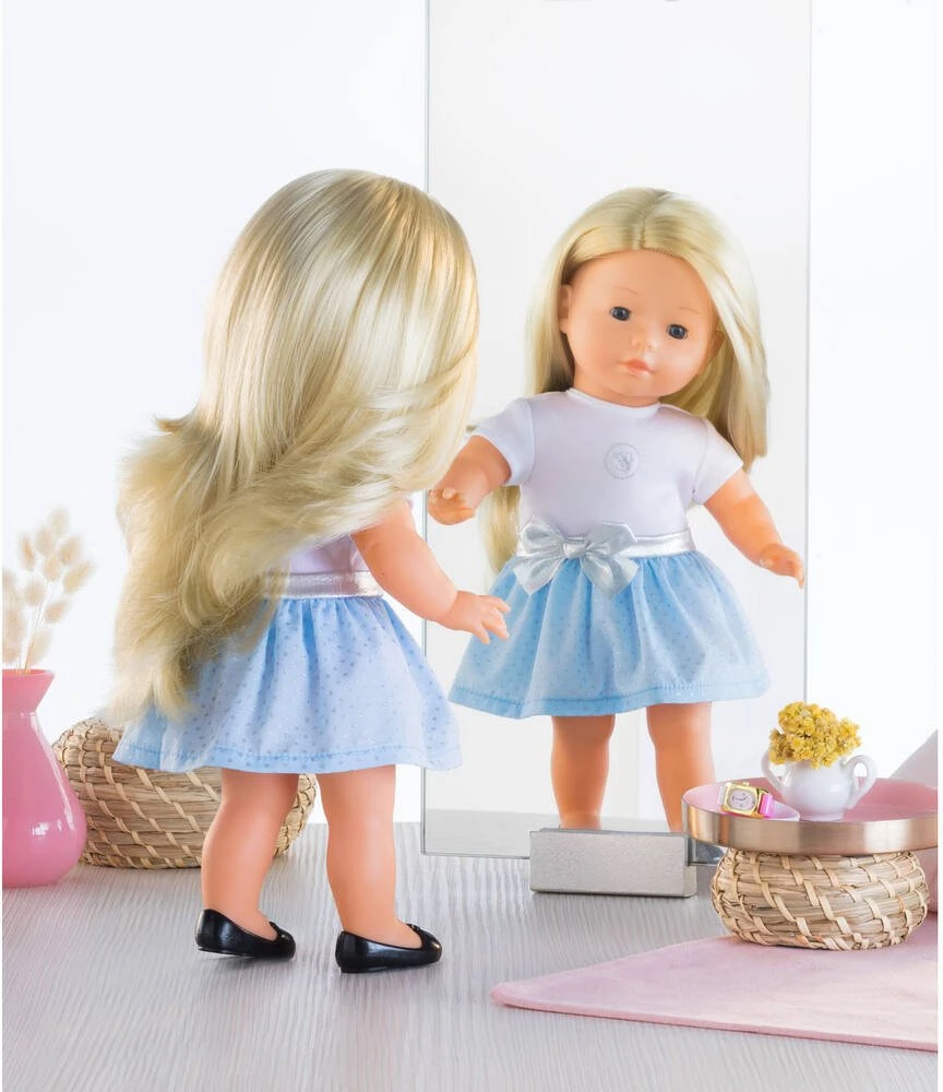 Poupée à habiller de 36 cm au corps souple « effet » sous-vêtement avec de longs cheveux faciles à coiffer. Personnalisez Paloma avec près de 100 vêtements et accessoires. Son visage; ses bras et ses jambes; à la délicate senteur de vanille; sont en vinyle doux au toucher. Son corps souple la rend facilement manipulable. Avec ses yeux dormeurs; elle dort quand on la couche sur le dos.