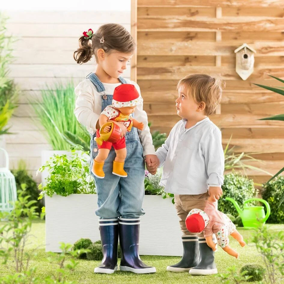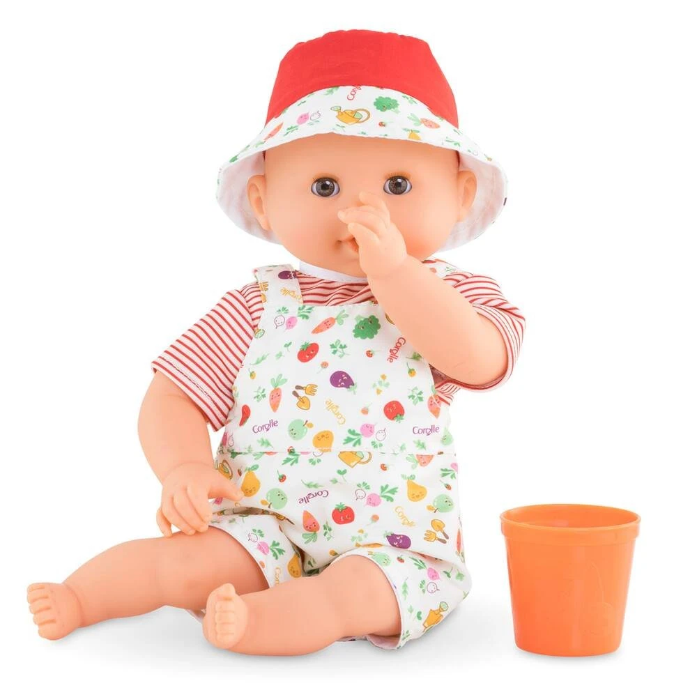 Il mesure 30cm, la taille parfaitement adaptĂ©e aux petits bras et mains de l’enfant pour le manipuler. Son corps souple lui permet de prendre les mĂŞmes positions qu’un vrai bĂ©bĂ©. Son visage, ses bras et ses jambes, Ă la dĂ©licate senteur de vanille, sont en vinyle doux au toucher. Son pouce peut se maintenir dans sa bouche. Avec ses yeux dormeurs, il fait dodo quand on le couche sur le dos. Il est habillĂ© d’un ensemble tout-en-un (salopette et marinière) et coiffĂ© d’un bob. Il est livrĂ© avec un pot de fleurs de bain qui laisse passer l’eau Ă travers des petits trous.