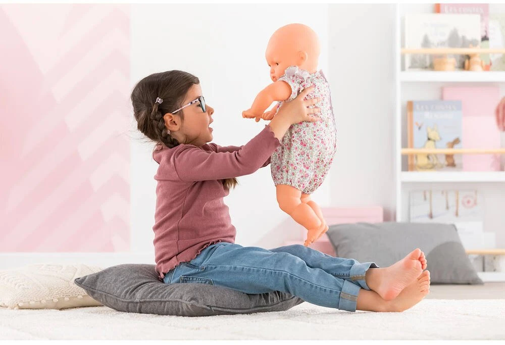 BĂ©bĂ© ChĂ©ri Jardin en Fleurs est un grand poupon Corolle pour jouer et faire comme les grands. Il est grand comme un nouveau-nĂ© ! Il mesure 52 cm et s’habille avec des vĂŞtements de vrais bĂ©bĂ©s (taille 3 mois) ou avec des crĂ©ations « maison ». Il est habillĂ© d’une barboteuse fleurie avec des volants sur les Ă©paules. Son visage, ses bras et ses jambes, Ă la dĂ©licate senteur de vanille, sont en vinyle doux au toucher. Son corps est souple pour faciliter ses mouvements. Avec ses yeux dormeurs, il fait dodo quand on le couche sur le dos. BĂ©bĂ© ChĂ©ri dispose de nombreux accessoires mon grand poupon pour imiter les gestes du quotidien et s’inventer des scĂ©narios de jeu multiples et variĂ©s.