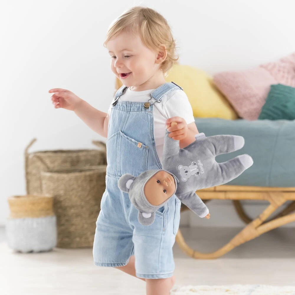 Pti’CĹ“ur Koala est le cadeau idĂ©al pour le premier anniversaire et/ ou le premier noĂ«l ! Ce petit poupon de 30 cm a la taille parfaitement adaptĂ©e aux petits bras et mains de l’enfant pour ĂŞtre attrapĂ© et manipulĂ© très facilement. Son corps souple sans billes est lĂ©ger et facile Ă saisir. Sa tĂŞte et ses mains; Ă la dĂ©licate senteur de vanille; sont en vinyle doux au toucher. Sa toile de corps toute douce (non amovible) favorise l’éveil des sens. Sa capuche est munie de deux petites oreilles de koala toutes mignonnes faciles Ă attraper. Elle peut ĂŞtre retirĂ©e mais reste astucieusement attachĂ©e grâce Ă une petite languette situĂ©e derrière la tĂŞte pour Ă©viter de l’Ă©garer. Pti’CĹ“ur Koala possède une Ă©tiquette pour Ă©crire le prĂ©nom de l’enfant; bien pratique en cas de perte ! Yeux fixes. Lavable Ă la main en surface. mon doudou Corolle : Toi et moi; pour toujours. tĂŞte et bras: vinyle; corps en toile Spun Poly et soft boa 100% Polyester; Bonnet en soft boa et argentĂ© 100% polyester. Rembourrage 100% polyester –
