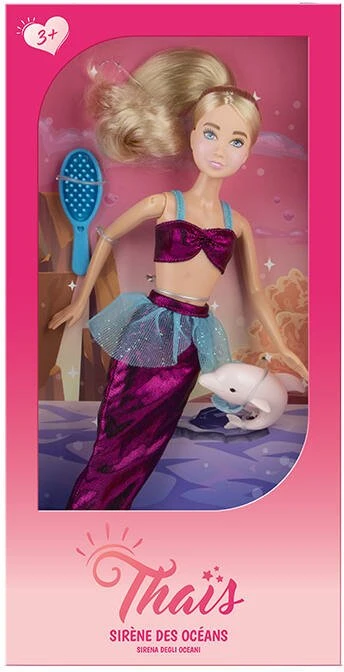Poupée mannequin de 29 cm avec accessoires. Contenu : 1 poupée, 1 tenue, 1 brosse à cheveux et 1 dauphin. Instructions imprimées sur la boîte. Mode, sport ou voyage… Thaïs est la poupée tendance qui se révèle à travers ses passions.